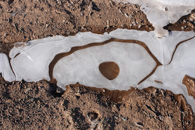 Puddle art only happens twice a year: in late fall and in early spring, and is at its best when there isn't much snow but instead mild days and cold nights.